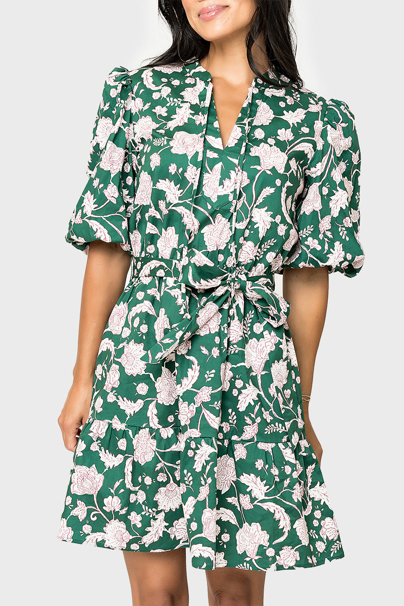 Achieve a timeless classic look with this Bubble Sleeve Open Placket Belted Dress. Crafted from a lightweight fabric, this dress features beautiful bubble sleeves, a split neck, and a tie waist for complete control of your silhouette. It's the perfect dress for any event.