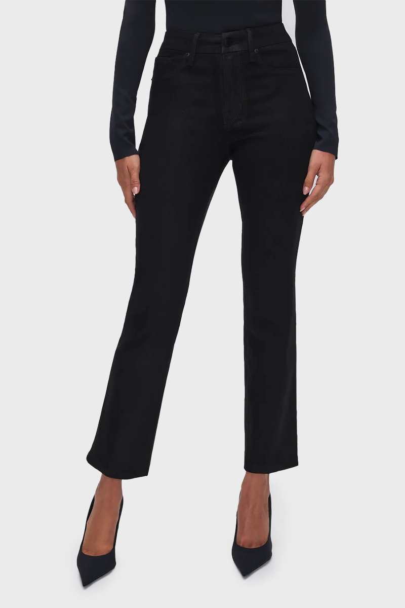 The ultimate sculpting jeans, featuring iconic straight legs. Good American Good Legs are the body-hugging, booty-shaping jeans of your dreams. Coated to give off a shiny leather-like appearance.